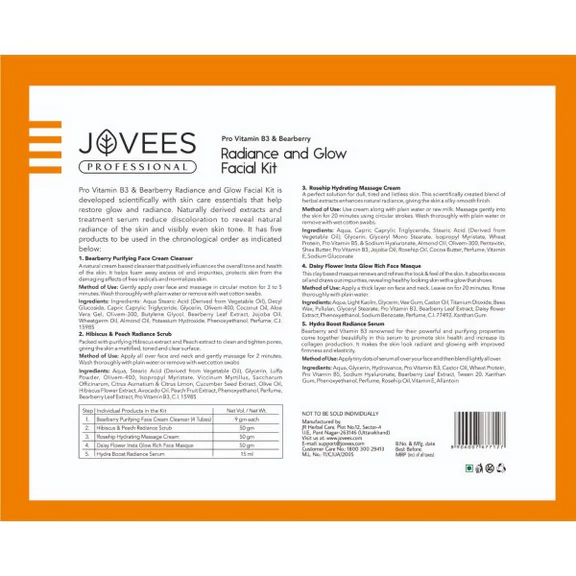 Pro Vitamin B3 And Bearberry Radiance and Glow Facial Kit is developed scientifically with skin care essentials which help to restore glow and radiance. Naturally derived extracts and treatment serum reduce discoloration to reveal natural radiance of the skin and visibly evens out the skin tone. It has five products to be used in the chronological order as indicated below.